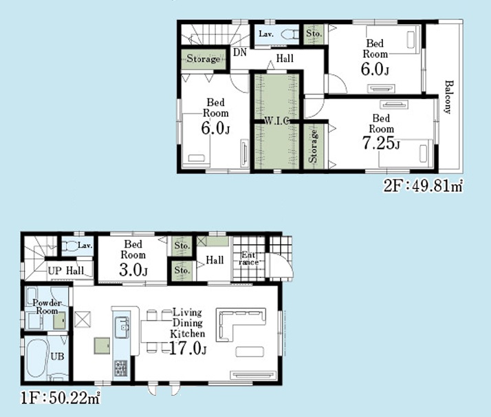 | 間取り/間取り詳細 | 4LDK / LDK17.0帖 / 洋室3.0帖 / 洋室7.25帖 / 洋室6.0帖 / 洋室6.0帖 | ||