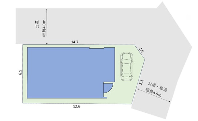| 接道状況 | 二方(角地) | ||