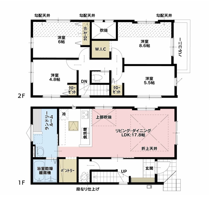 | 設備・条件 | トイレ2か所/駐車場あり/TVモニタ付インターホン/吹き抜け/リビングダイニング15畳以上/対面キッチン/システムキッチン/食器洗い乾燥機/パントリー/コンロ3口以上/浴室乾燥機あり/追い焚き/バス・トイレ別/洗濯機置き場/独立洗面台/シャワートイレ/シャンプードレッサー/バルコニー/ウォークインクローゼット/床下収納/ | ||