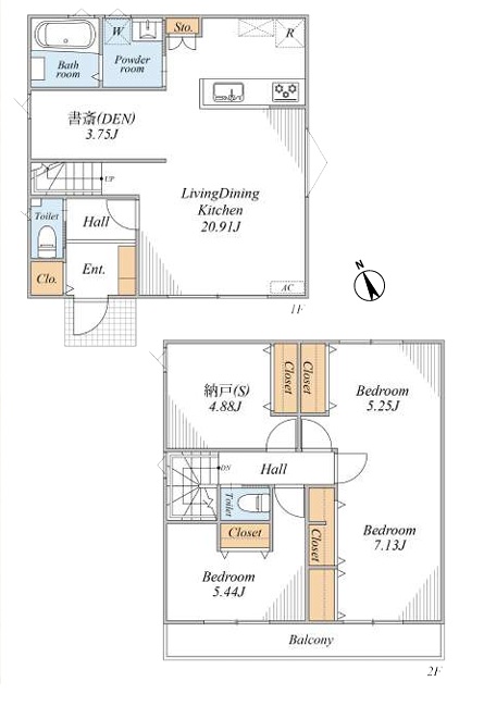 間取り/間取り詳細 2SLDK / LDK20.9帖 / 洋室12.38帖 / 洋室5.44帖 / S4.88帖 / その他3.75帖