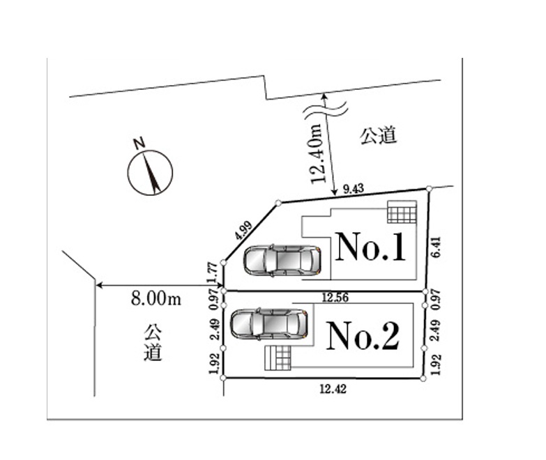 接道1 北東側 公道 幅員12.2m